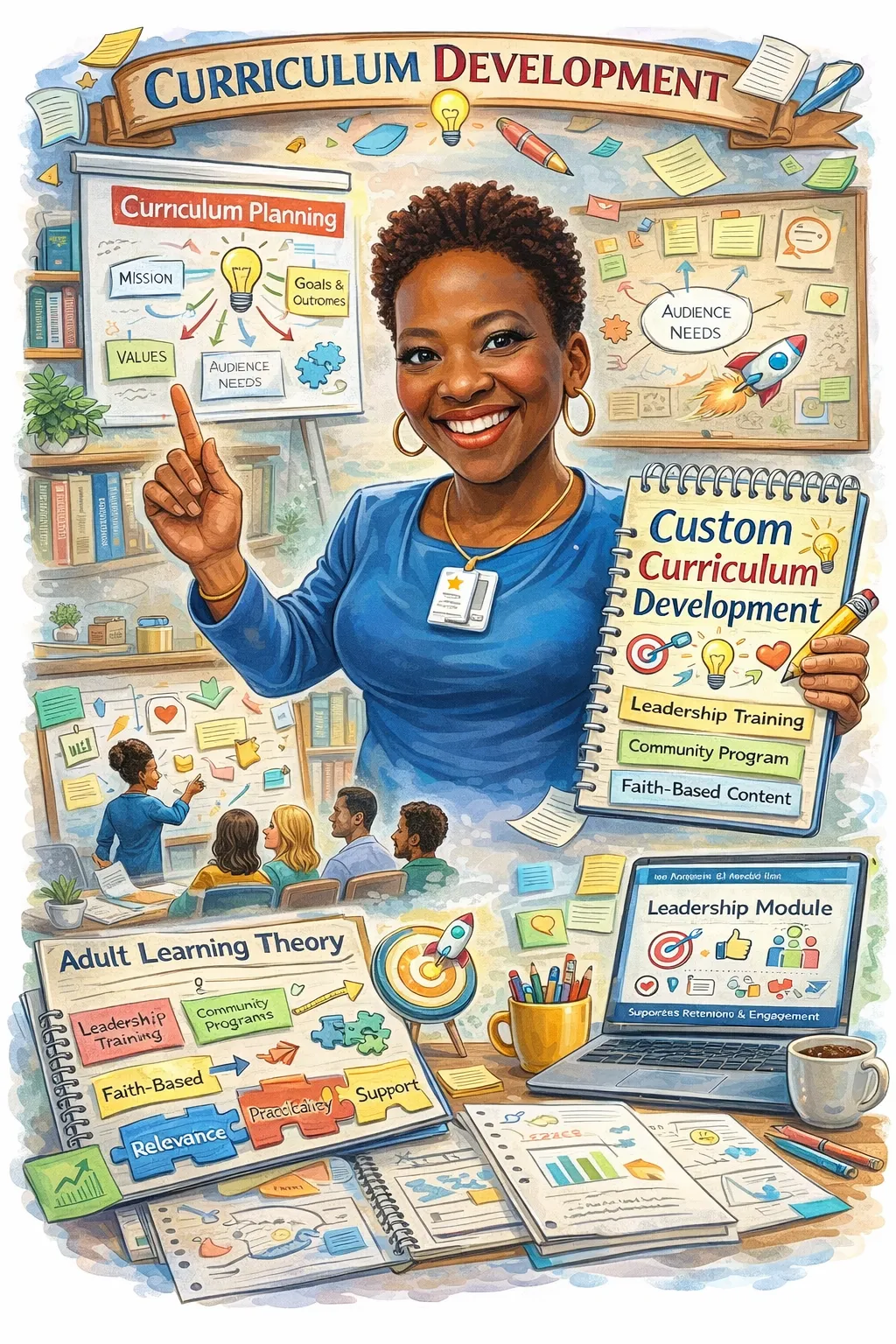 Dr. Phelps specializes in custom curriculum design for organizations that need more than off-the-shelf solutions. Whether you're developing leadership training, community programs, wellness initiatives, or faith-based content, she brings a strategic approach that centers your mission, your values, and your desired outcomes.
